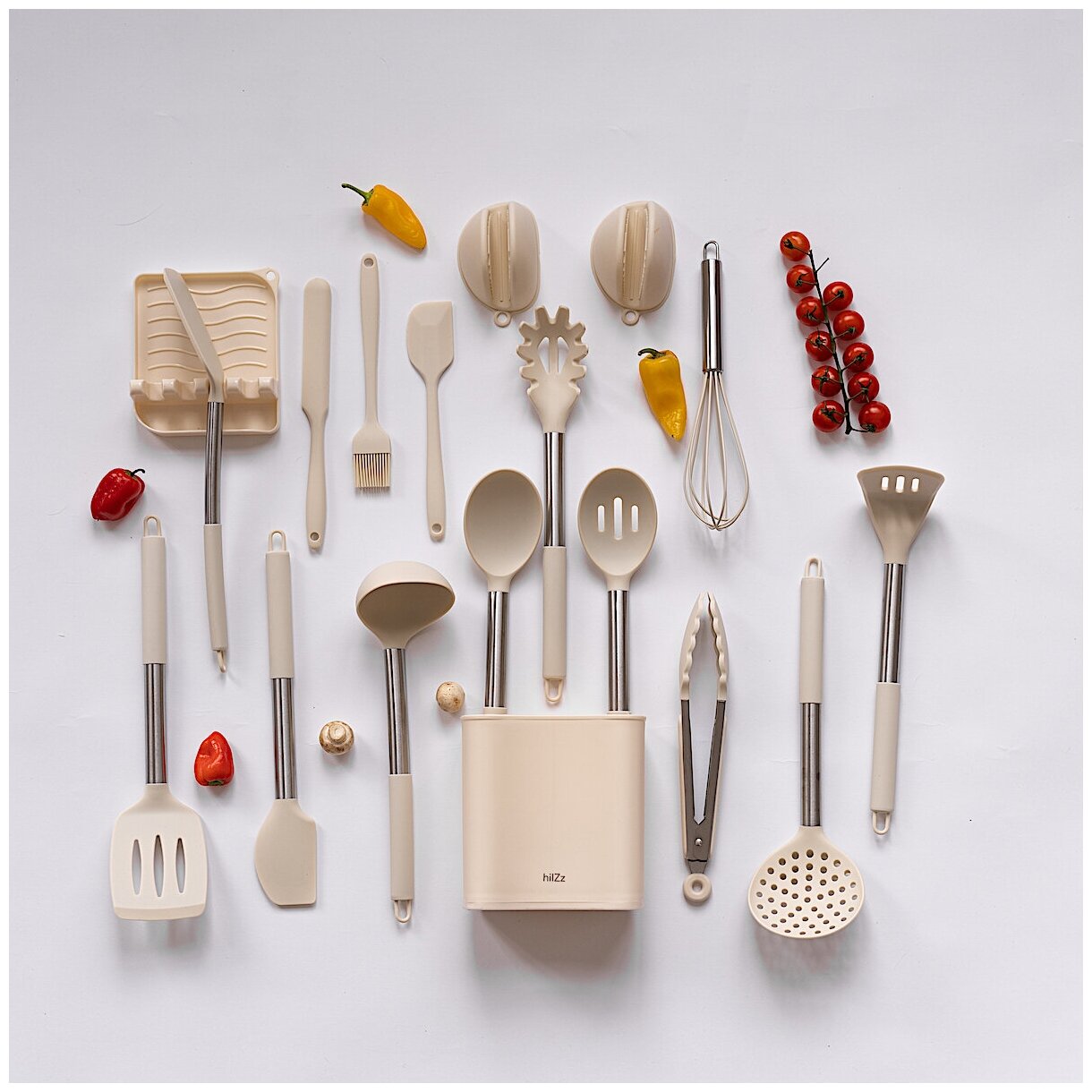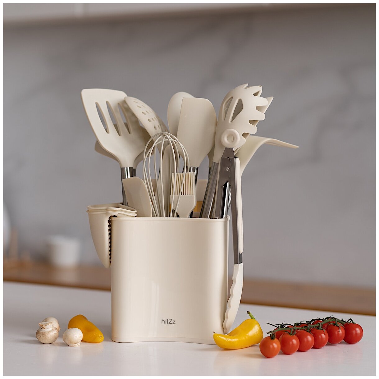 Отзывы на Набор кухонных принадлежностей hilZz из силикона и нержавеющей стали 18 предметов, молочный