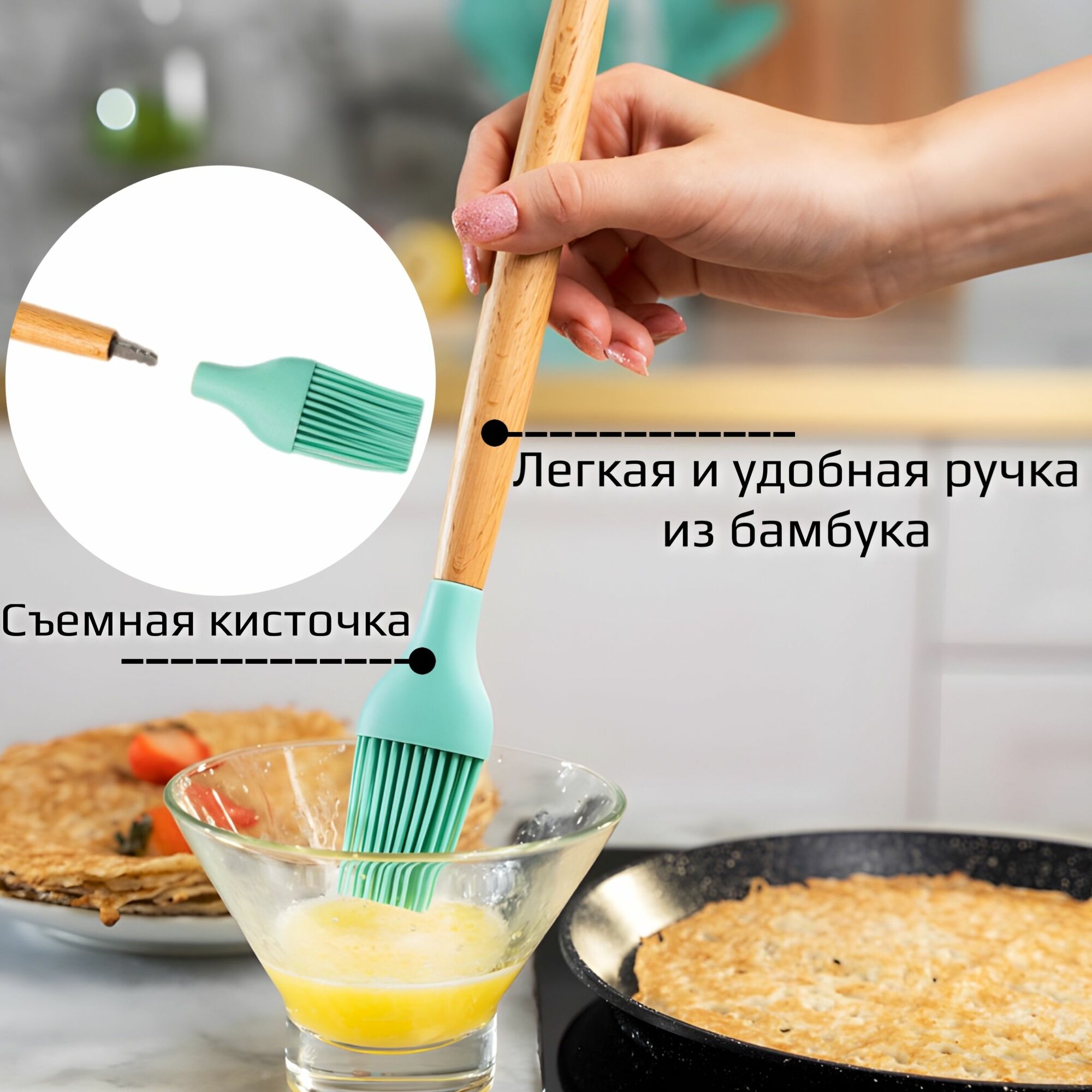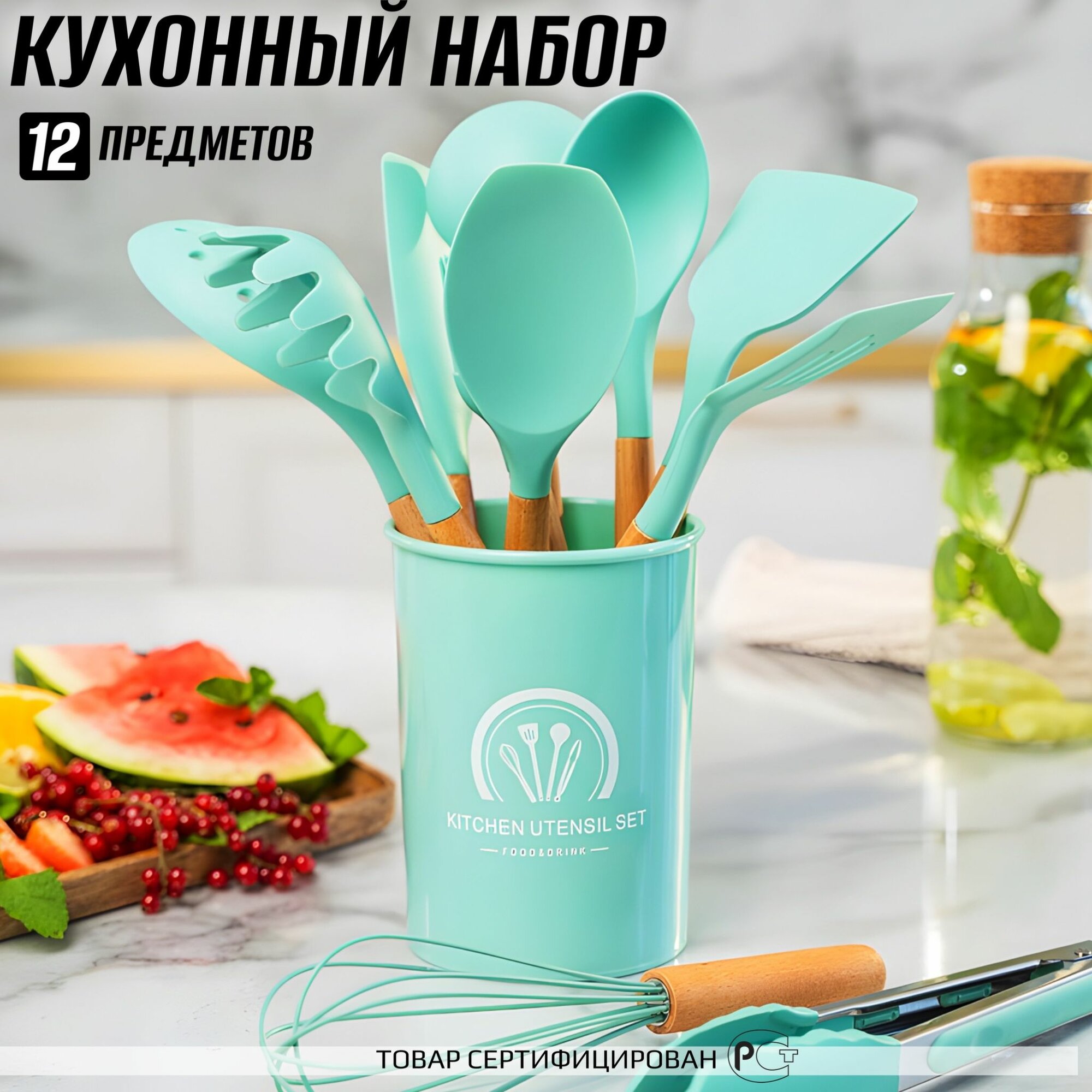 Набор кухонных принадлежностей силиконовый c ручкой из дерева 12 предметов информация: