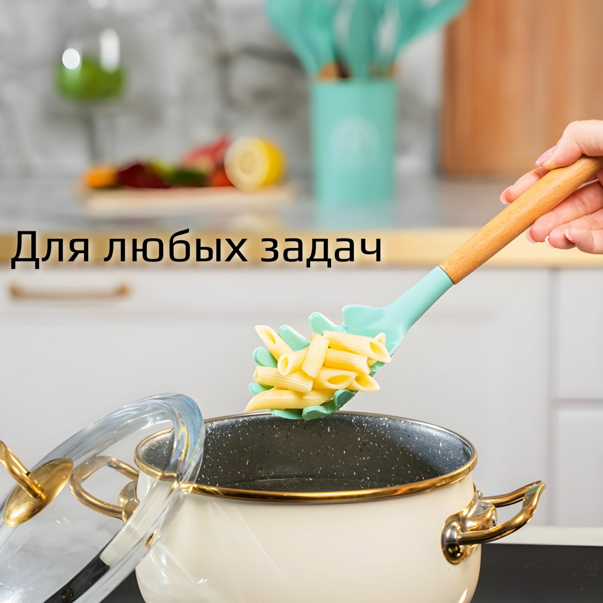 Отзывы на Набор кухонных принадлежностей силиконовый c ручкой из дерева 12 предметов