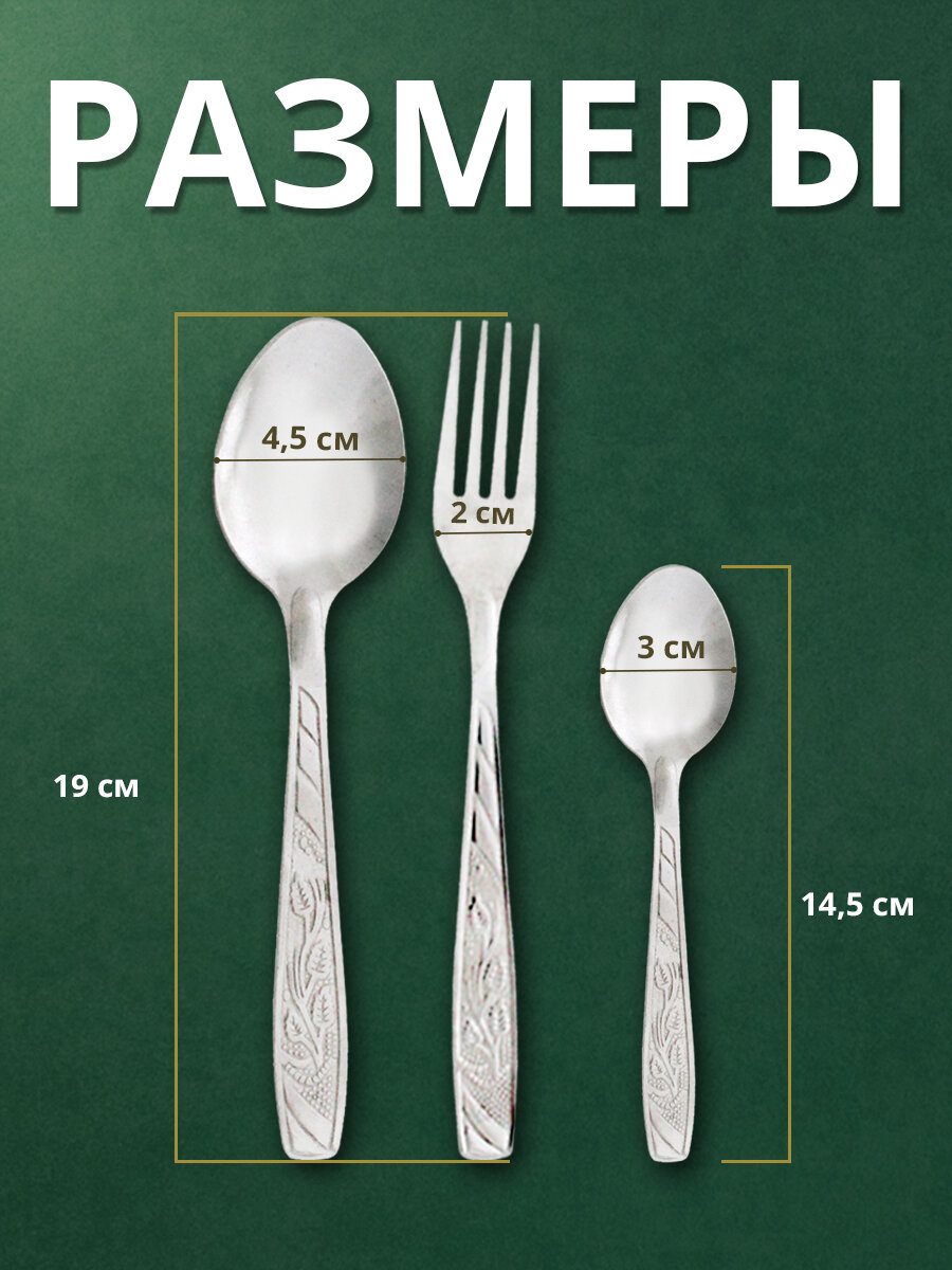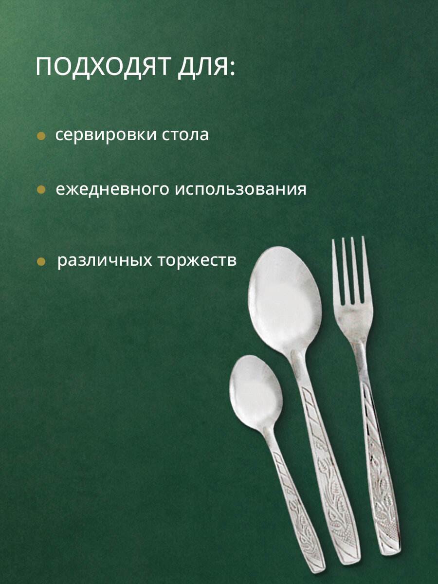 | В набор входит | 6 - чайных ложек, 6 - вилок, 6 - столовых ложек |