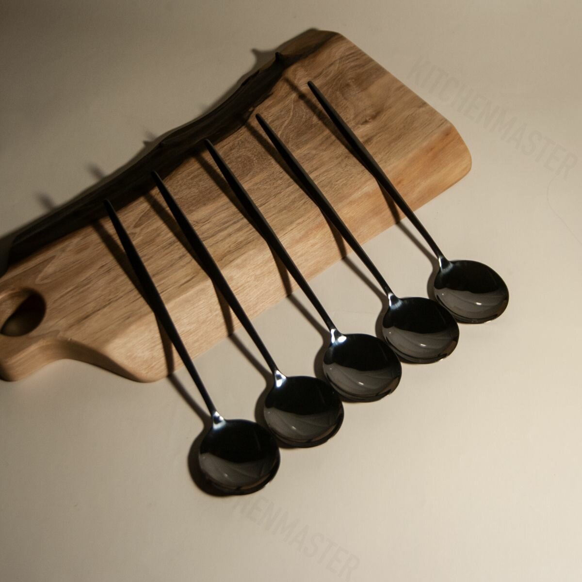 Набор ложек столовых 5 штук с круглым черпаком , черные информация: