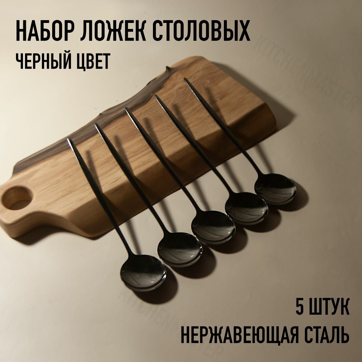 10 цен на Набор ложек столовых 5 штук с круглым черпаком , черные