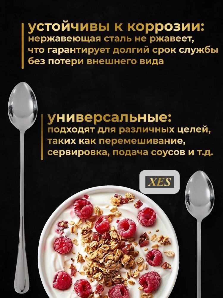 Набор десертных, чайных ложек с длинной ручкой информация: