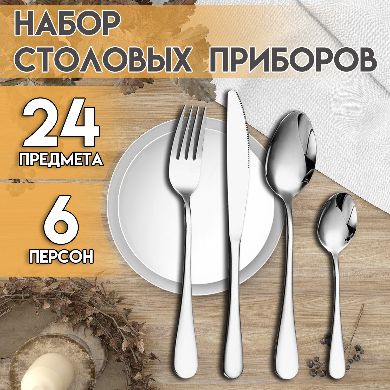 10 цен на Набор столовых приборов 24 предмета на 6 персон. Классический дизайн.