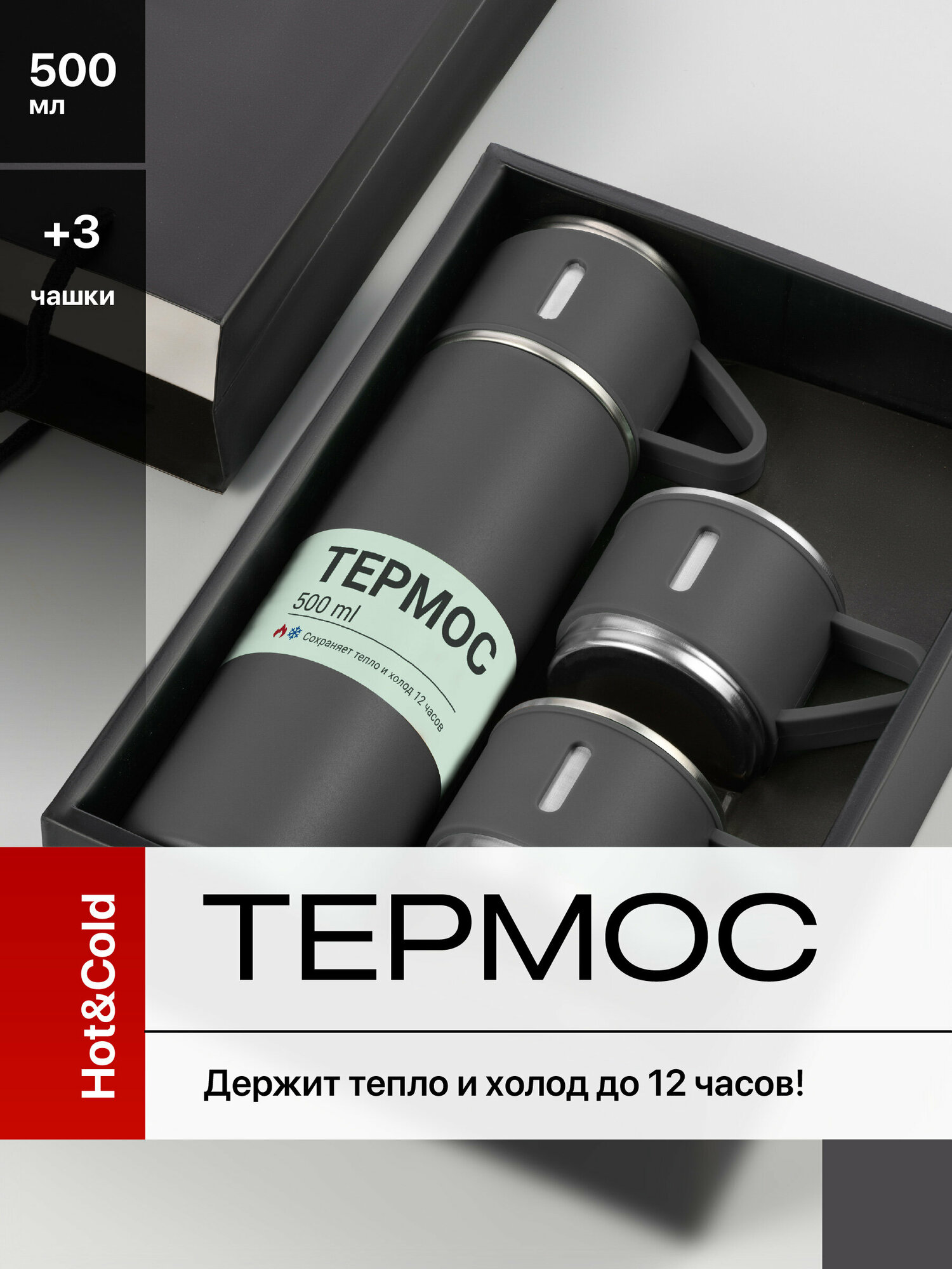 Термос для чая и кофе 0,5 с кружками, Travel Friendly, Мини тремос походный, подарочный набор информация: