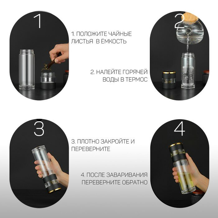 Термос-заварник, 420 мл, с термометром, черный 9933505 882 ₽