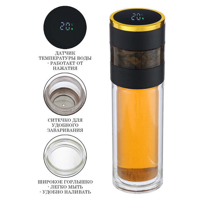 Термос-заварник, 420 мл, с термометром, сохраняет тепло до 12 ч, черный 9933505 . 1 339 ₽