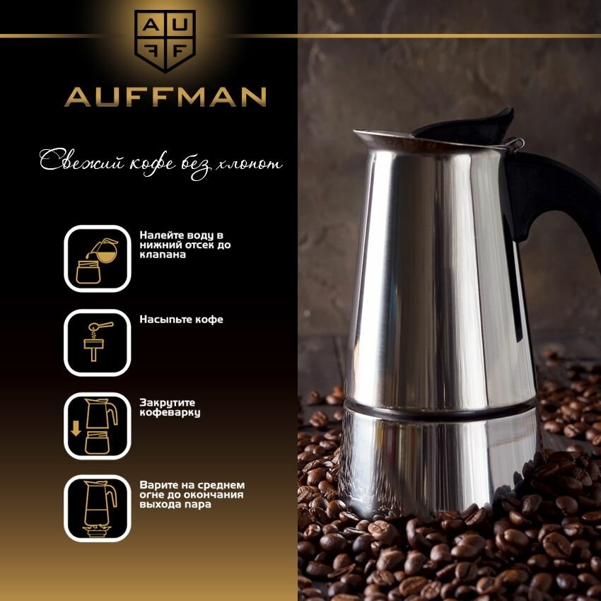 10 цен на Гейзерная кофеварка для газовой и электрической плиты Auffman на 9 чашек, 450 мл