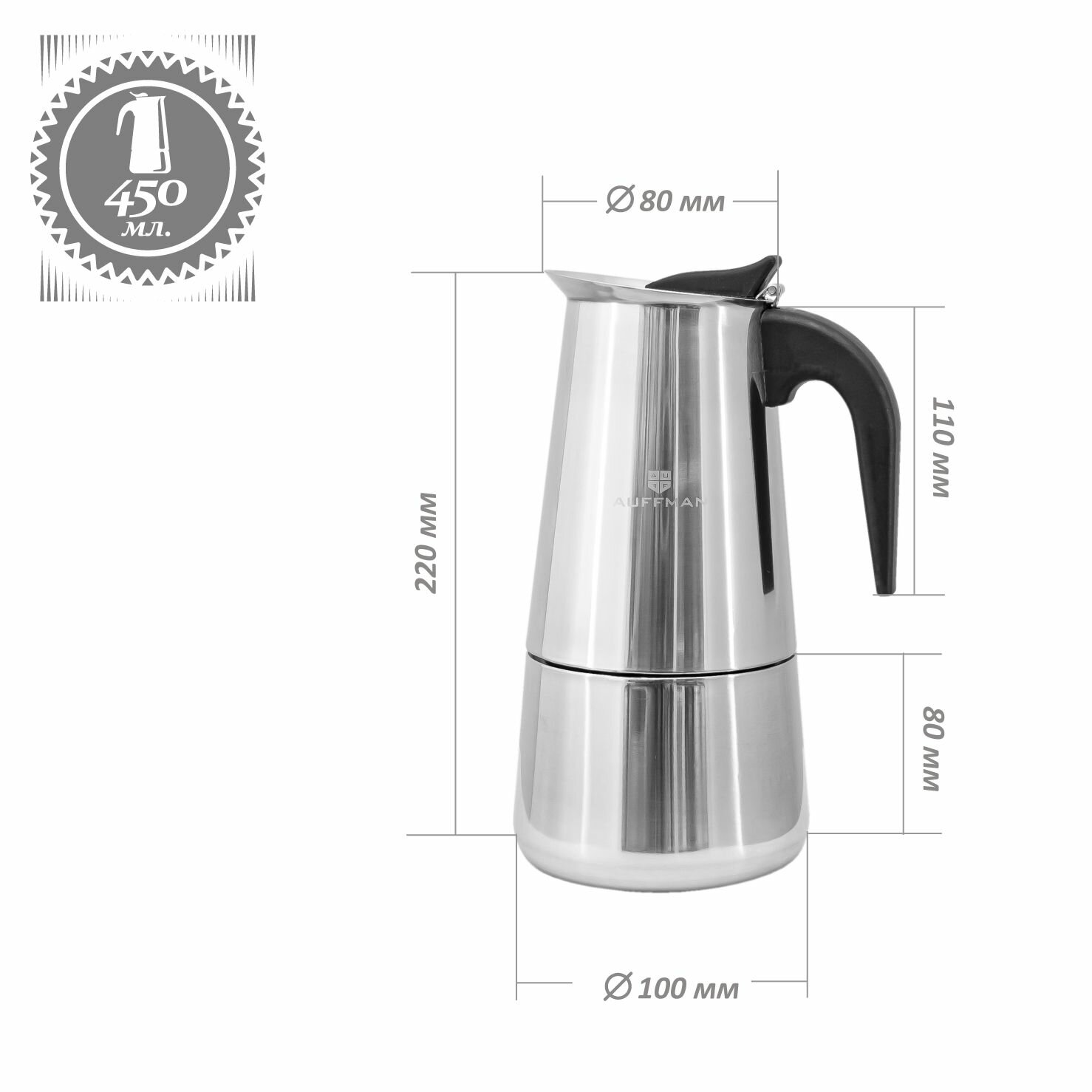 Гейзерная кофеварка для газовой и электрической плиты Auffman на 9 чашек, 450 мл информация: