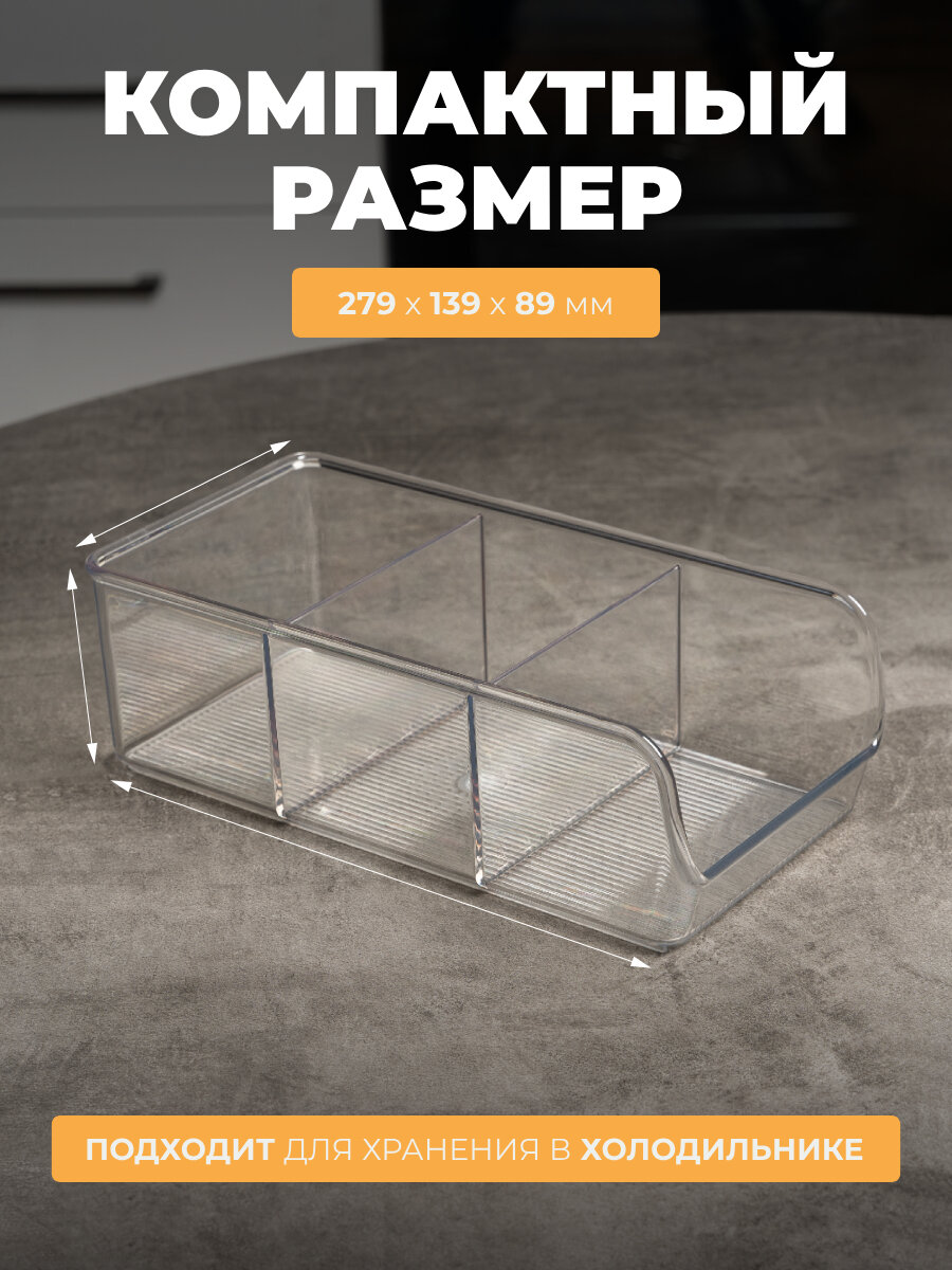Органайзер для холодильника пластиковый Raido 281х184х89 (прозрачный) 493 ₽