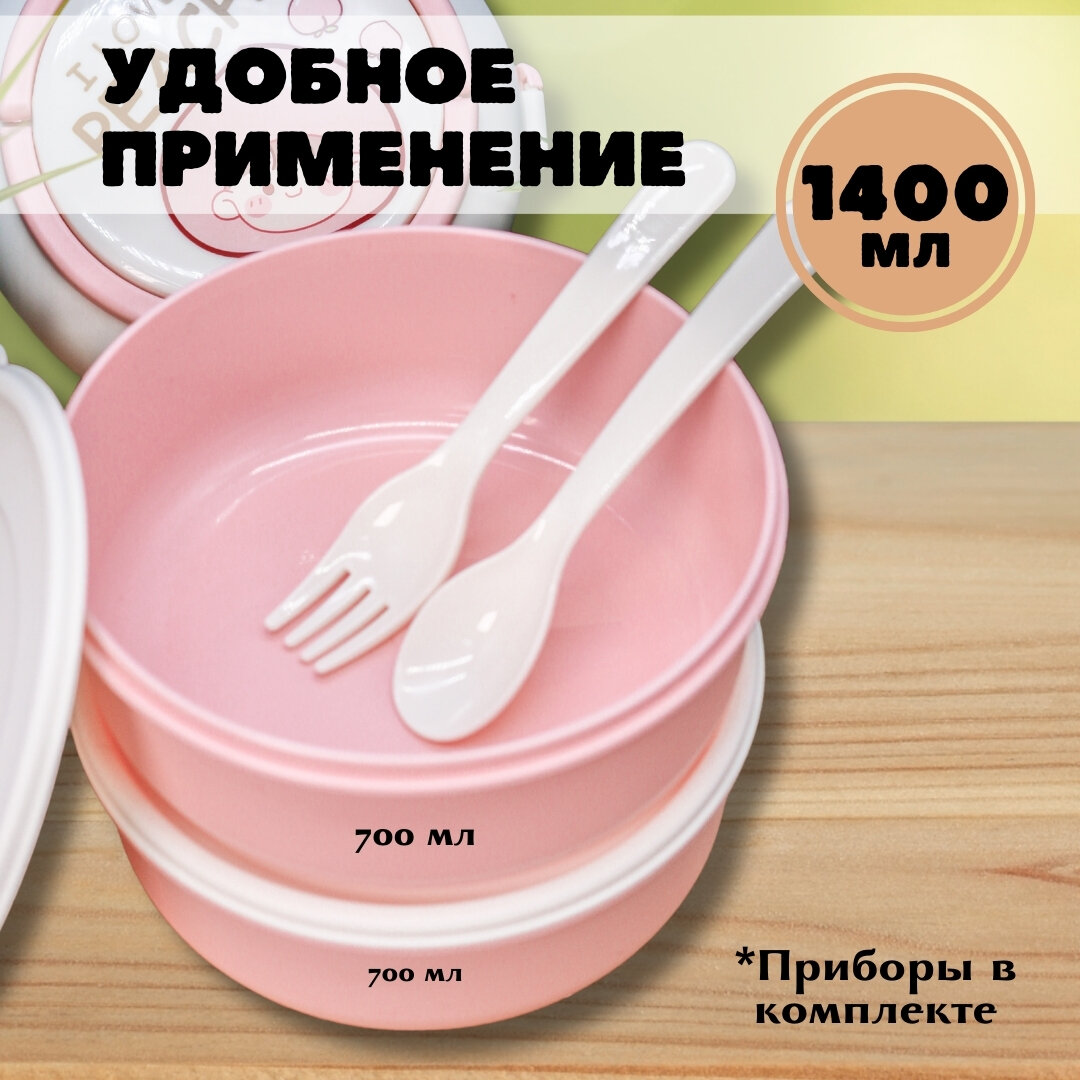 Ланч бокс контейнер для еды с приборами "Cute princess", пищевой пластик, 1200 мл, розовый
