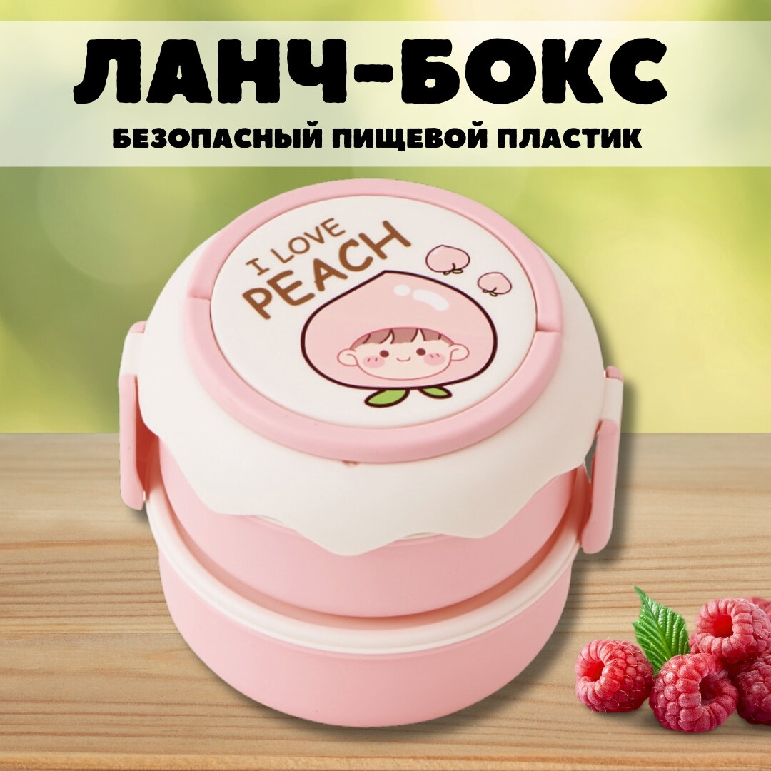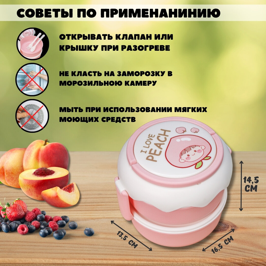 Ланч-бокс для еды Circle i love Peach pink с вилкой и ложкой информация: