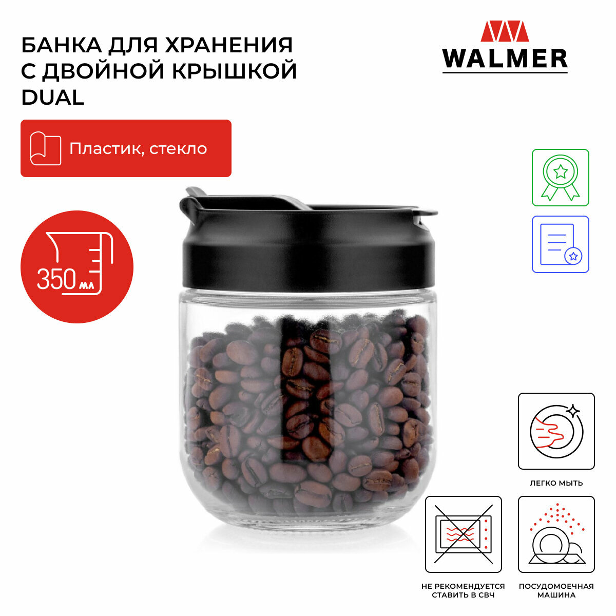 Банка Walmer для хранения Dual с двойной крышкой 350 мл (W05230350) 895 ₽