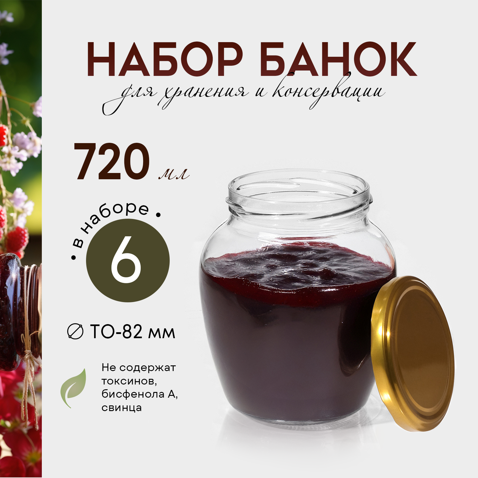 Набор банок с крышкой, ТО-82 мм, 720 мл, 6 шт. информация: