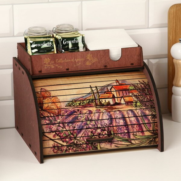 Хлебница деревянная с подставкой под специи "Лаванда", 29,6 х 29,6 х 23,7см, венге информация: