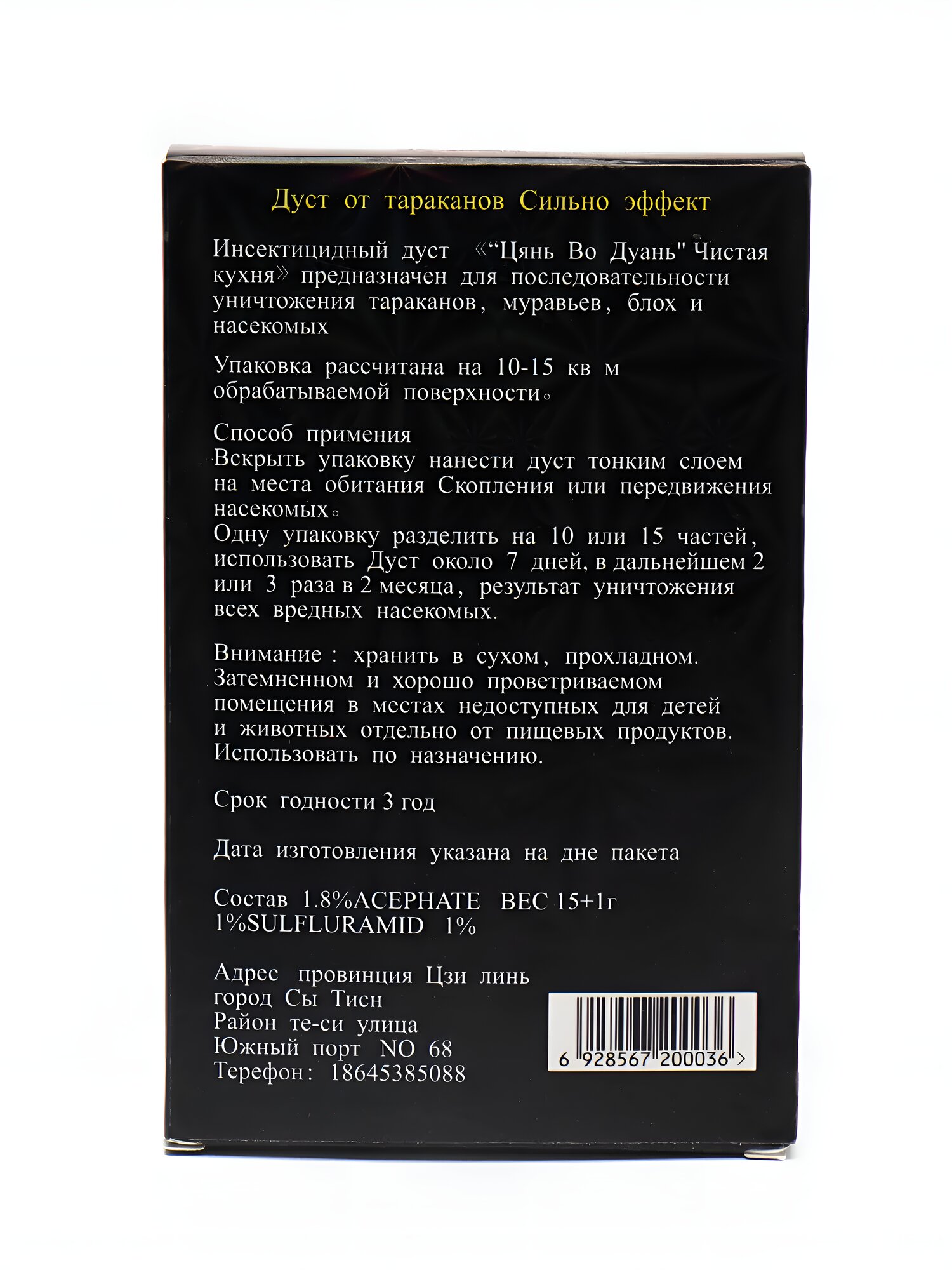 | Дополнительная информация | Порошок Цянь Во Дуань не только эффективно уничтожает тараканов, но и предотвращает их повторное появление |