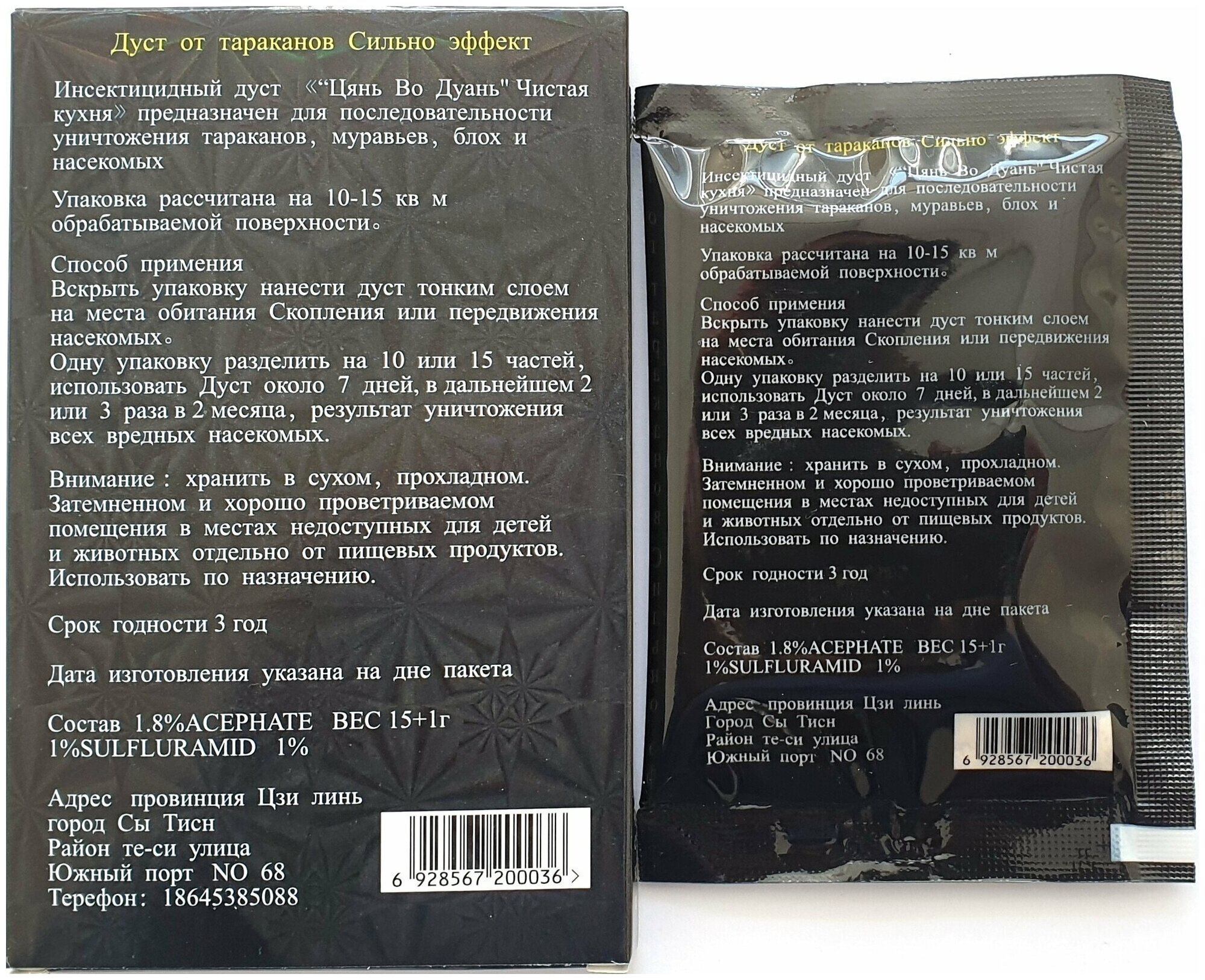 | Дополнительная информация | Порошок Цянь Во Дуань не только эффективно уничтожает тараканов, но и предотвращает их повторное появление |