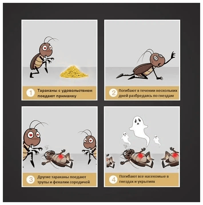 | Дополнительная информация | Порошок Цянь Во Дуань не только эффективно уничтожает тараканов, но и предотвращает их повторное появление |