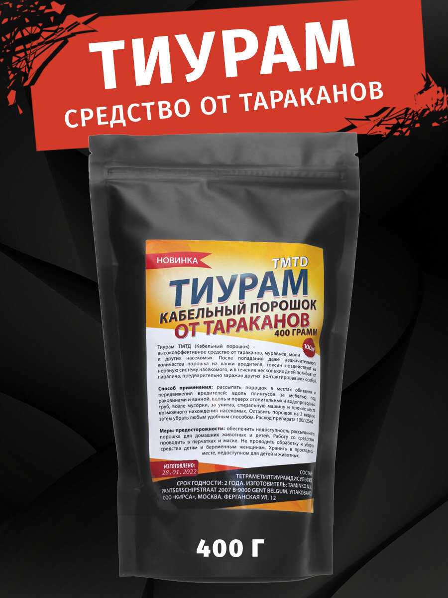 Кабельный порошок "Тиурам" от клопов и тараканов 400 гр информация:
