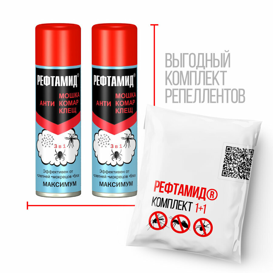 Средство от комаров, клещей, мошки. Рефтамид Максимум 147мл. 2 штуки информация: