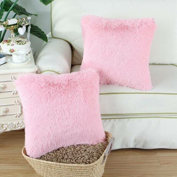 Отзывы на Декоративная меховая подушка "Травка", размер 50 х 50 см , Розовая