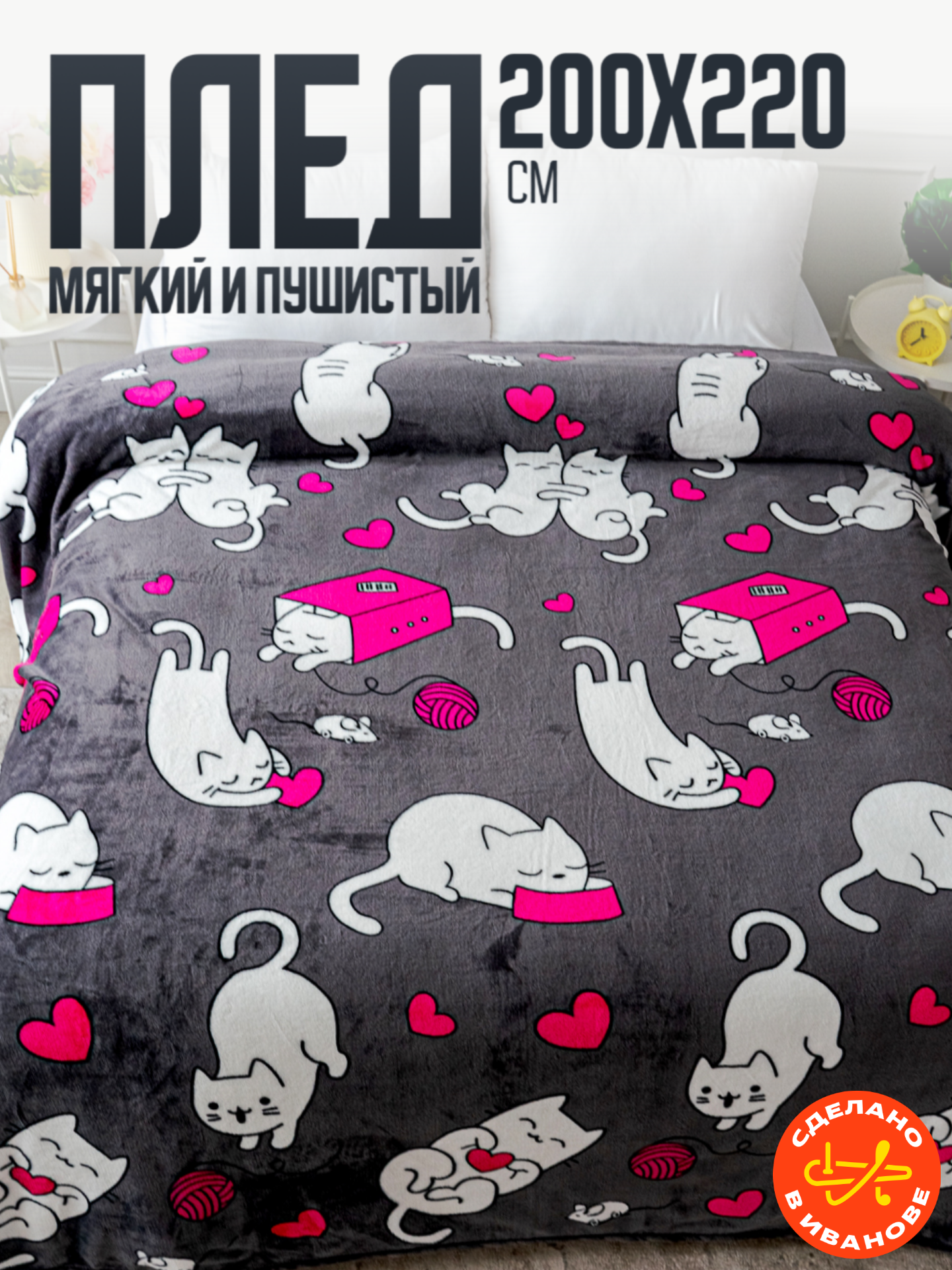 10 цен на Плед 200х220 Павлина FREEDom Котики в сердцах-2