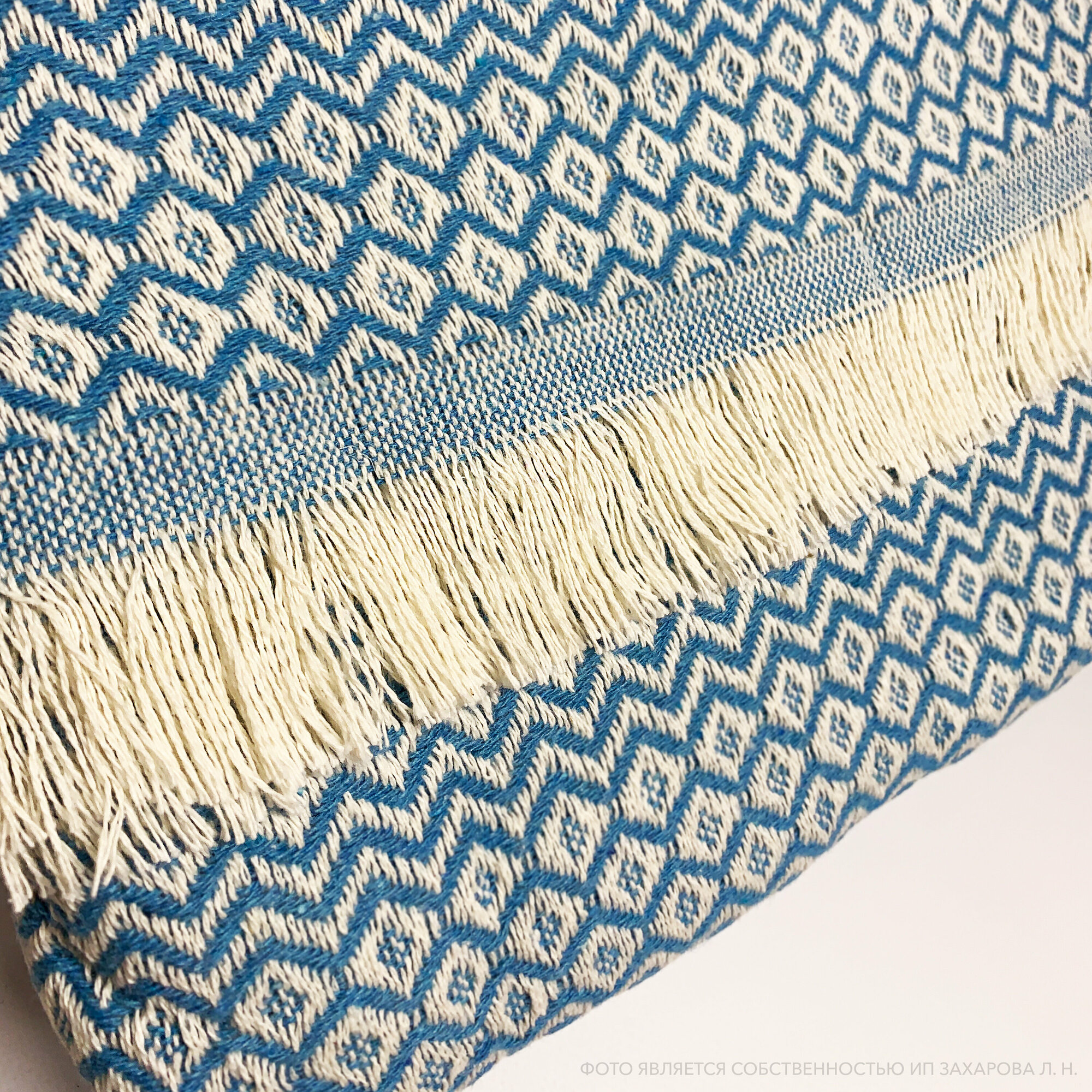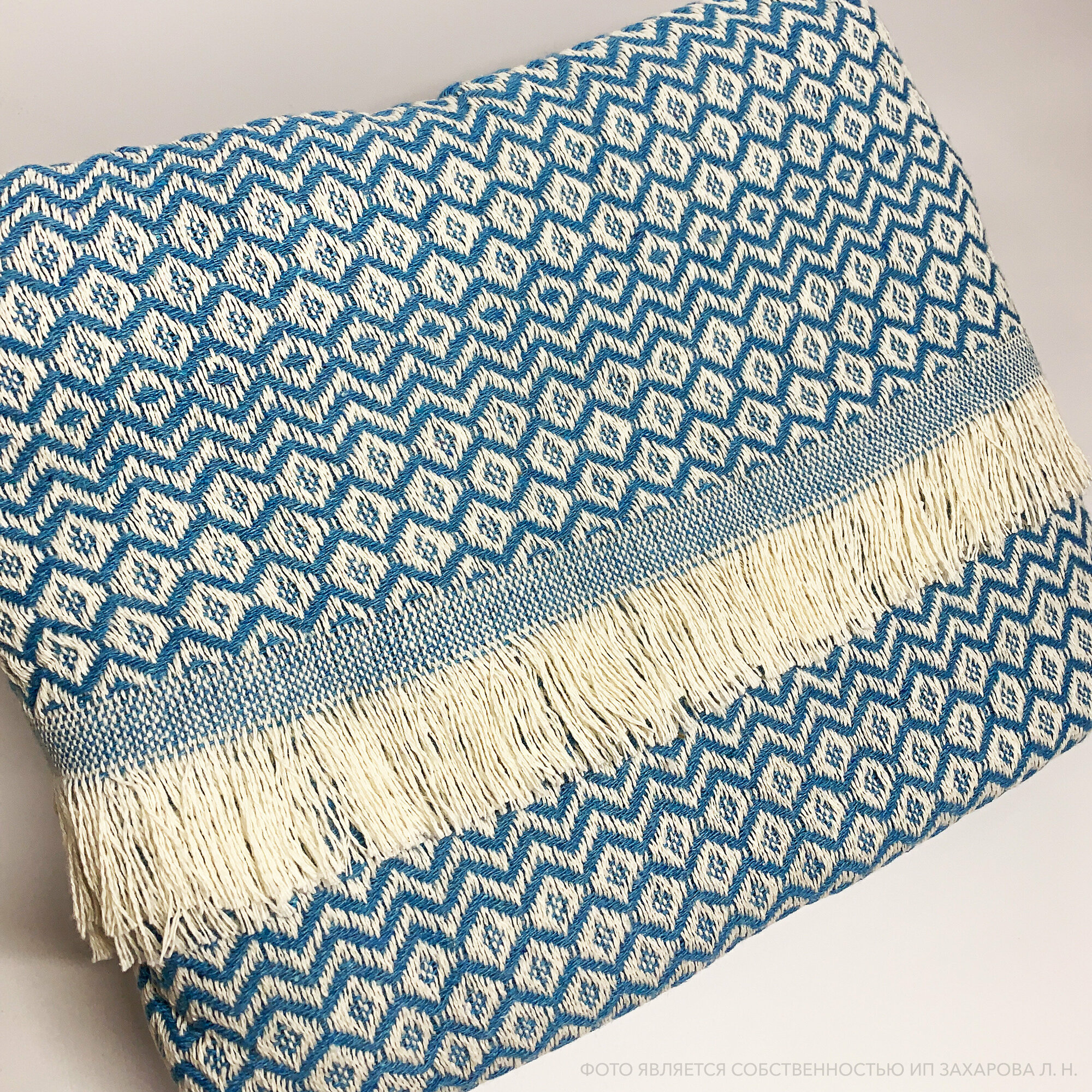 10 цен на Плед на диван хлопок с бахромой Venera 145х200 см, Голубой с узорами