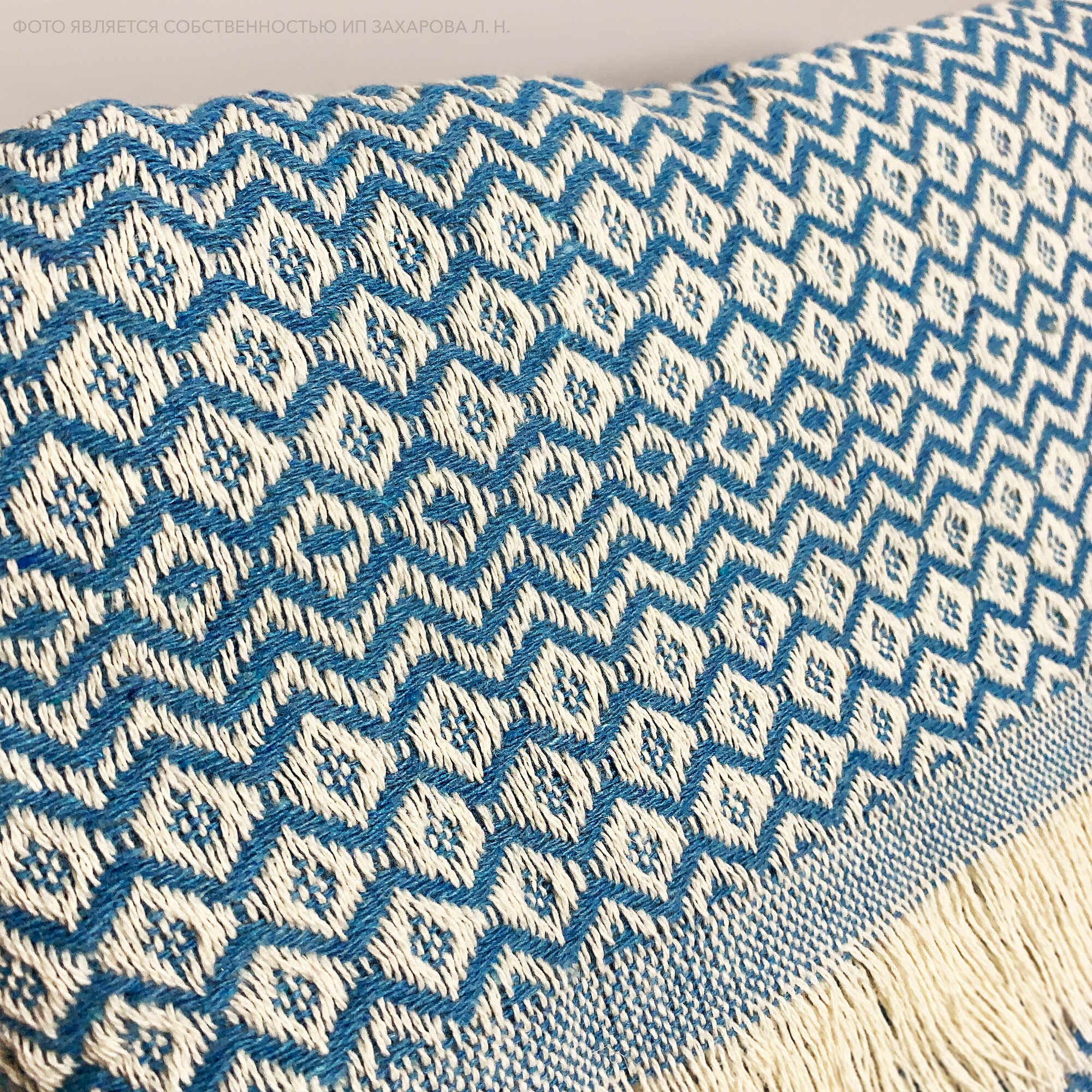 Плед на диван хлопок с бахромой Venera 145х200 см, Голубой с узорами информация: