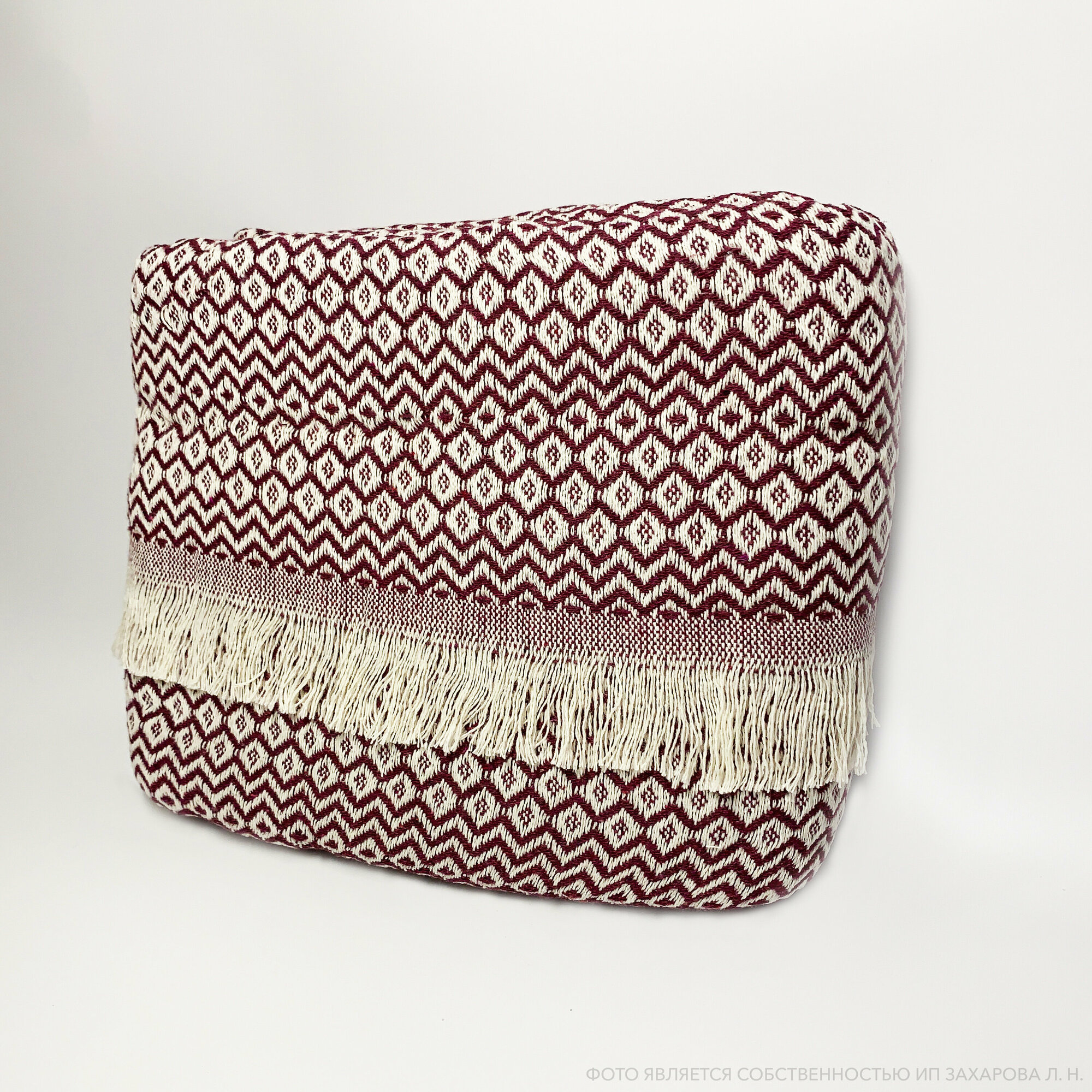 Плед покрывало хлопок с бахромой Хлопковый Venera 145х200 см, Коричнево-красный с узорами 1 970 ₽