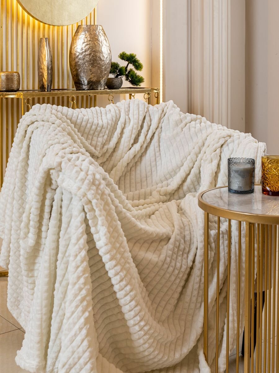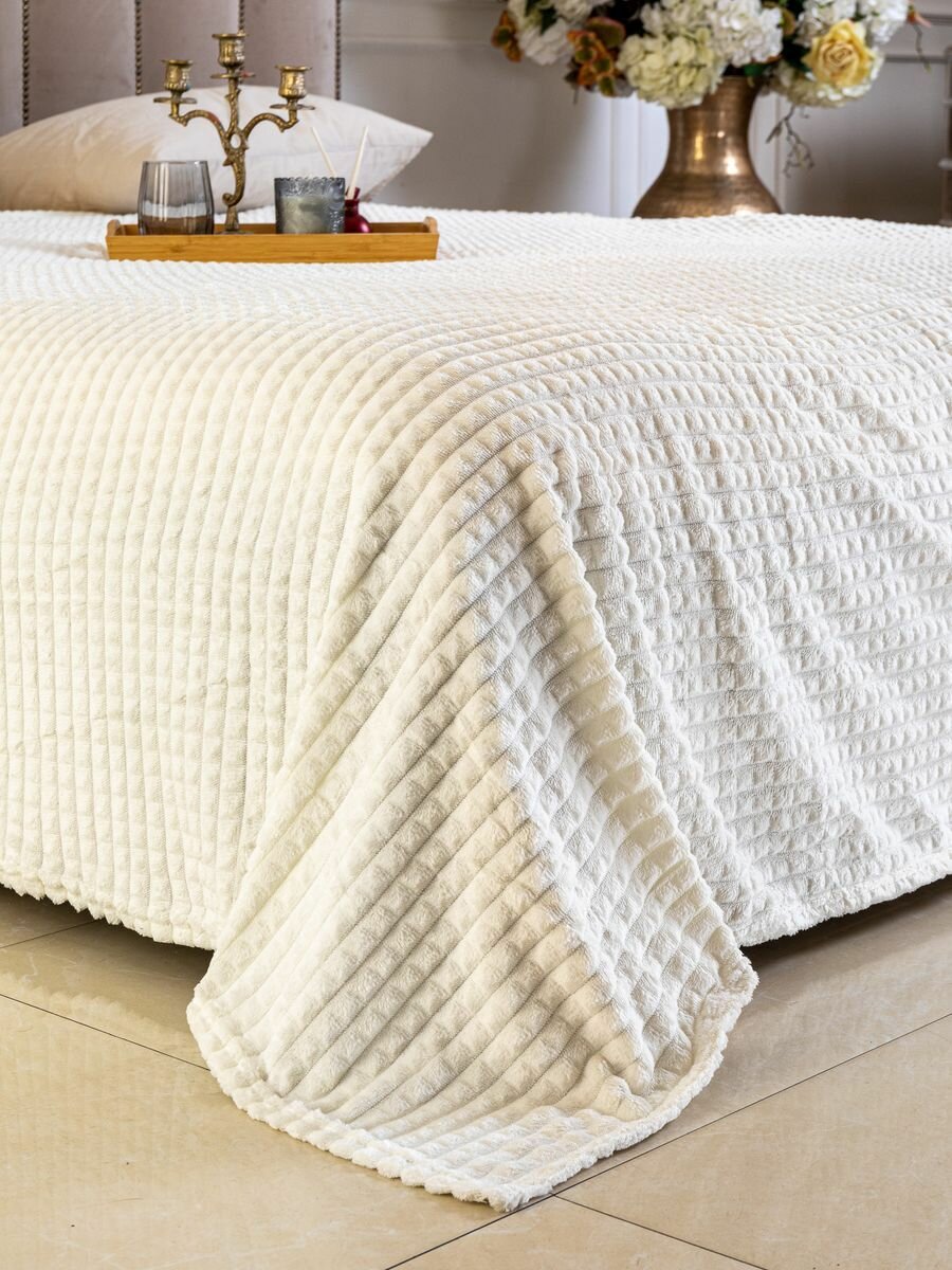 10 цен на Плед кубик,евро, Плед-покрывало, велсофт, 220х200 см, молочный