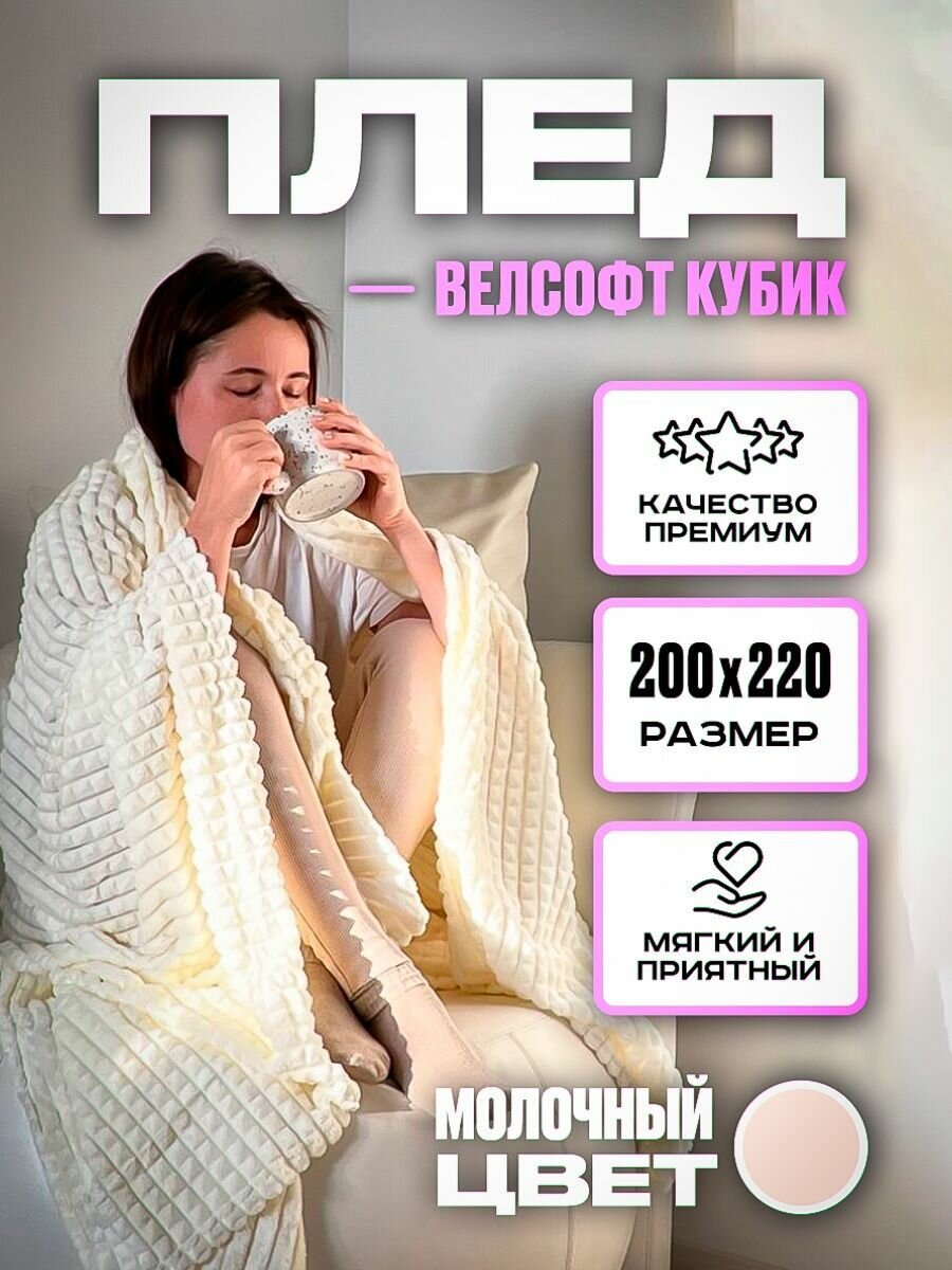Отзывы на Плед кубик,евро, Плед-покрывало, велсофт, 220х200 см, молочный