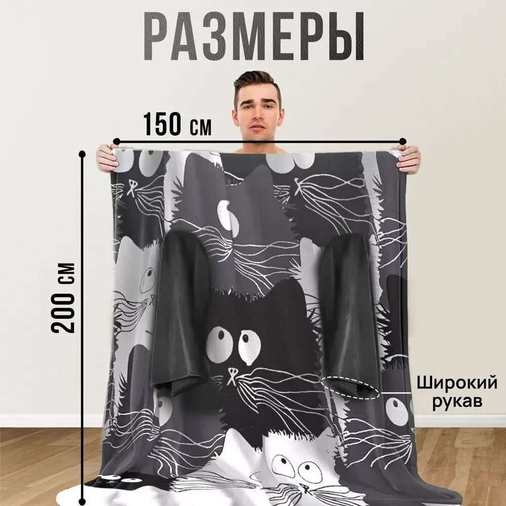 Плед с рукавами Totmart плюшевый, плед накидка, плед халат, покрывало для мебели 150х200 см, коты информация:
