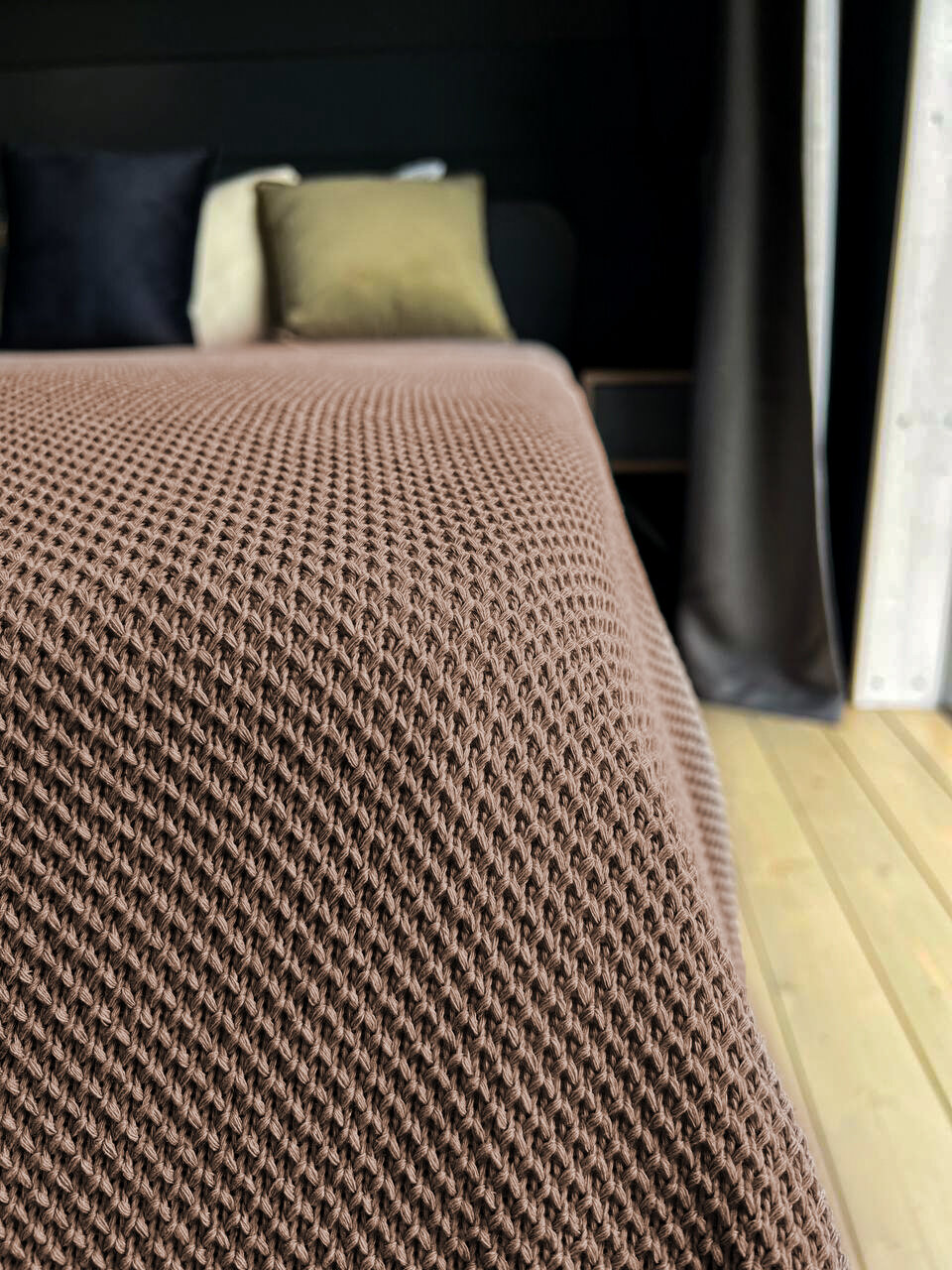 Отзывы на Плед 220х240, вязаный, KING PLAID, бежевый, хлопок 100%, покрывало на кровать, на диван, на кресло, большой, тонкий, в подарочной сумке