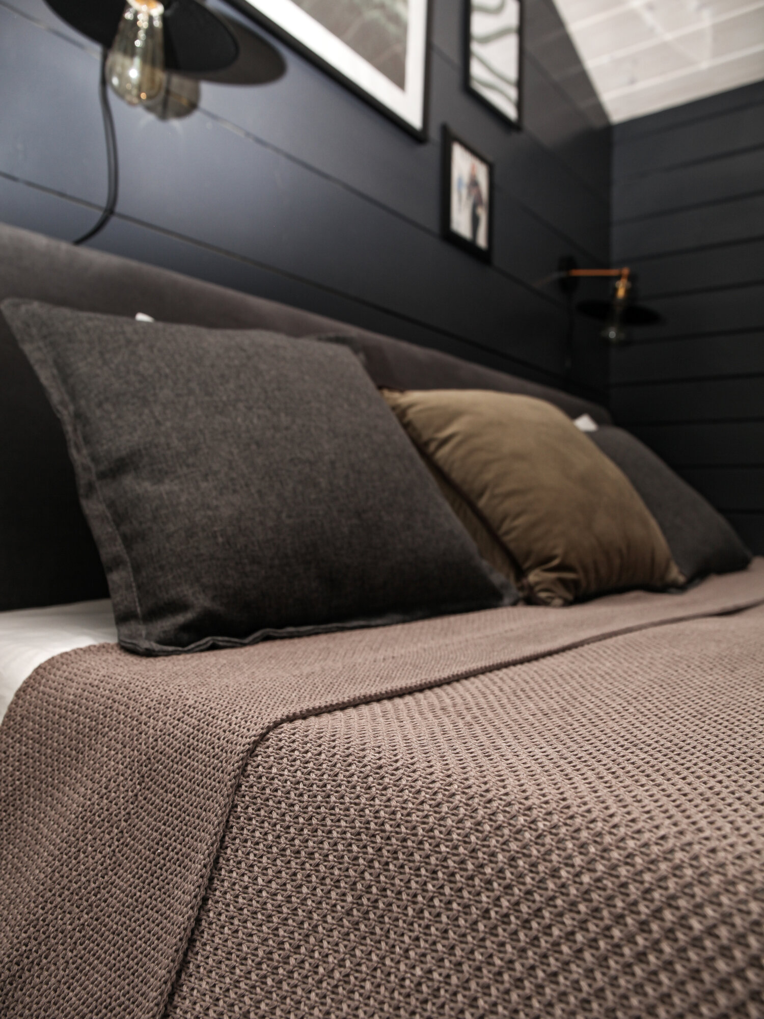 Плед 220х240, вязаный, KING PLAID, темно-серый, хлопок 100%, покрывало на кровать, на диван, на кресло, большой, тонкий, в подарочной сумке 4 200 ₽