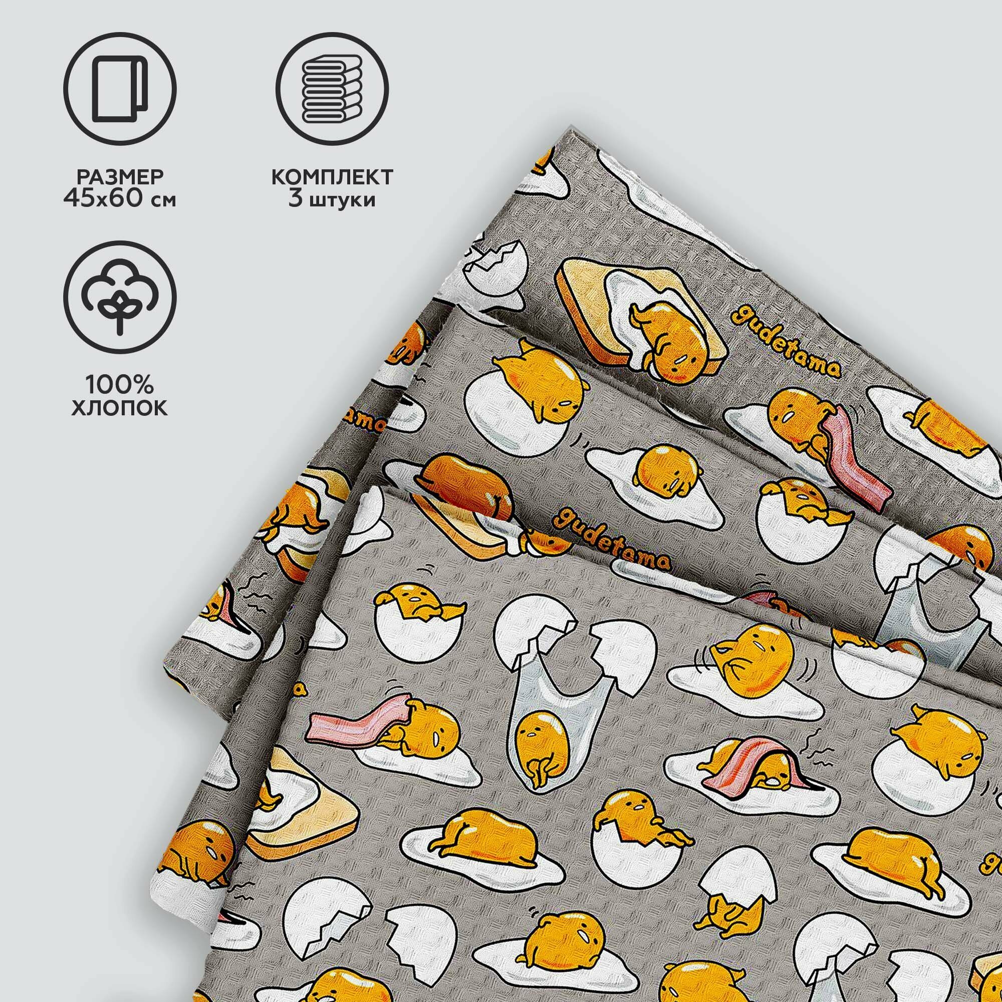 Набор вафельных полотенец 45х60 (3 шт.) "Непоседа" рис 16650-1 Gudetama информация:
