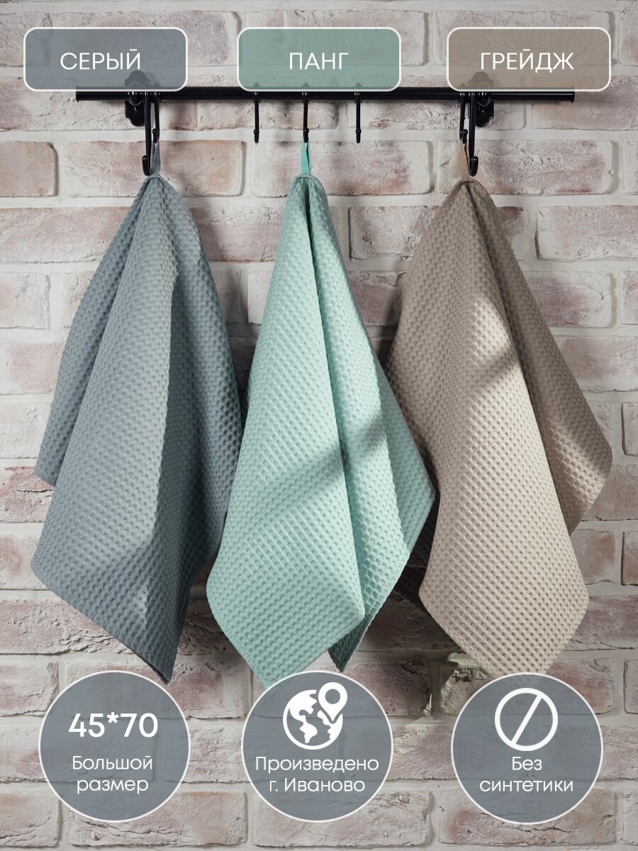 Отзывы на Набор вафельных полотенец для кухни 45х70см, серый/панг/грейдж