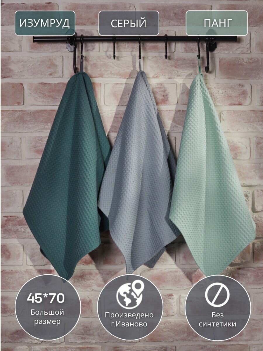 Отзывы на Набор вафельных полотенец для кухни 45х70см, серый/панг/изумрудный