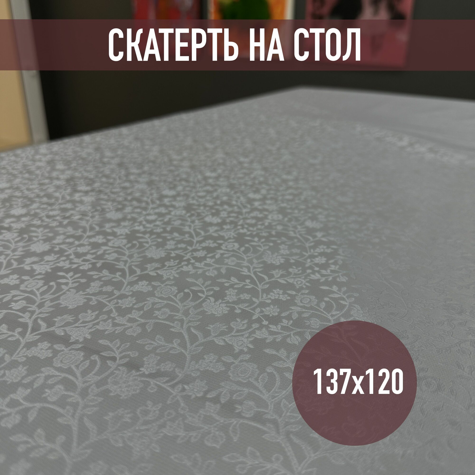 Клеенка на стол на тканевой основе Белые цветочные узоры 140 х137 840 ₽