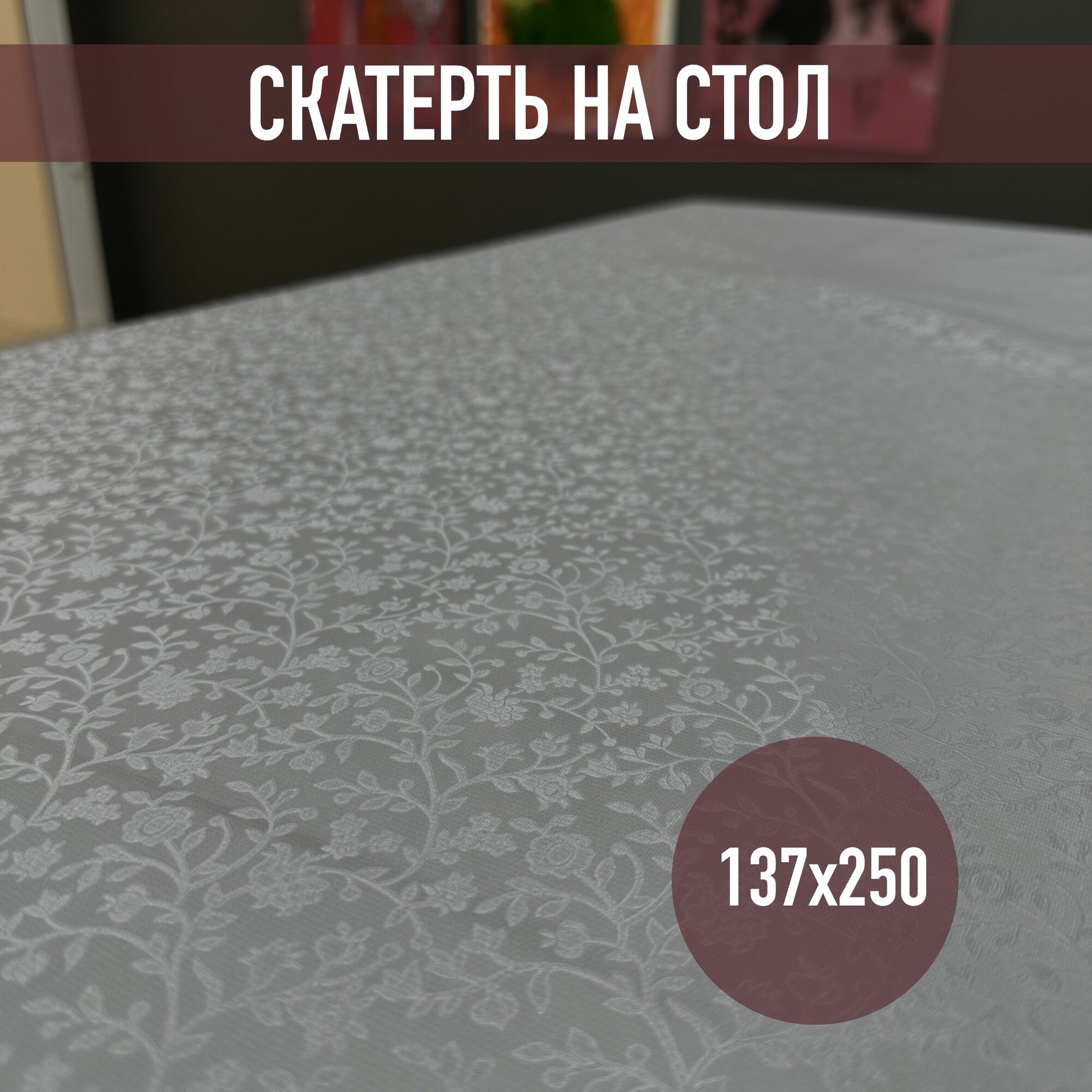 Клеенка на стол на тканевой основе серые цветочные узоры 250 х137 информация: