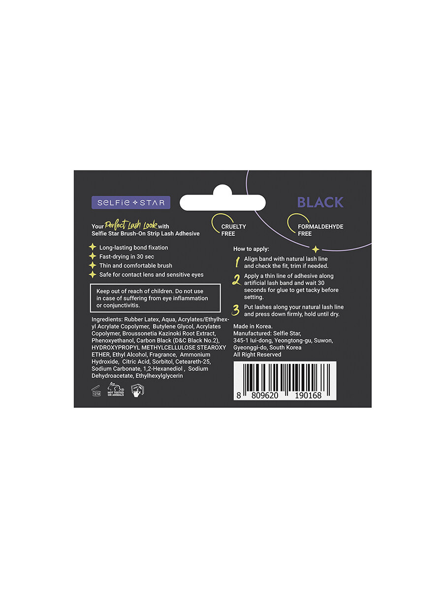 Selfie Star Клей для накладных ресниц с кисточкой, Черный, 5g. Strip Lash Adhesive Black информация: