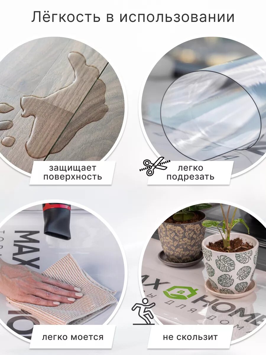Скатерть прозрачная 140 x 190 см, толщина 0,2 мм (200 мк) / мягкое-гибкое стекло ПВХ