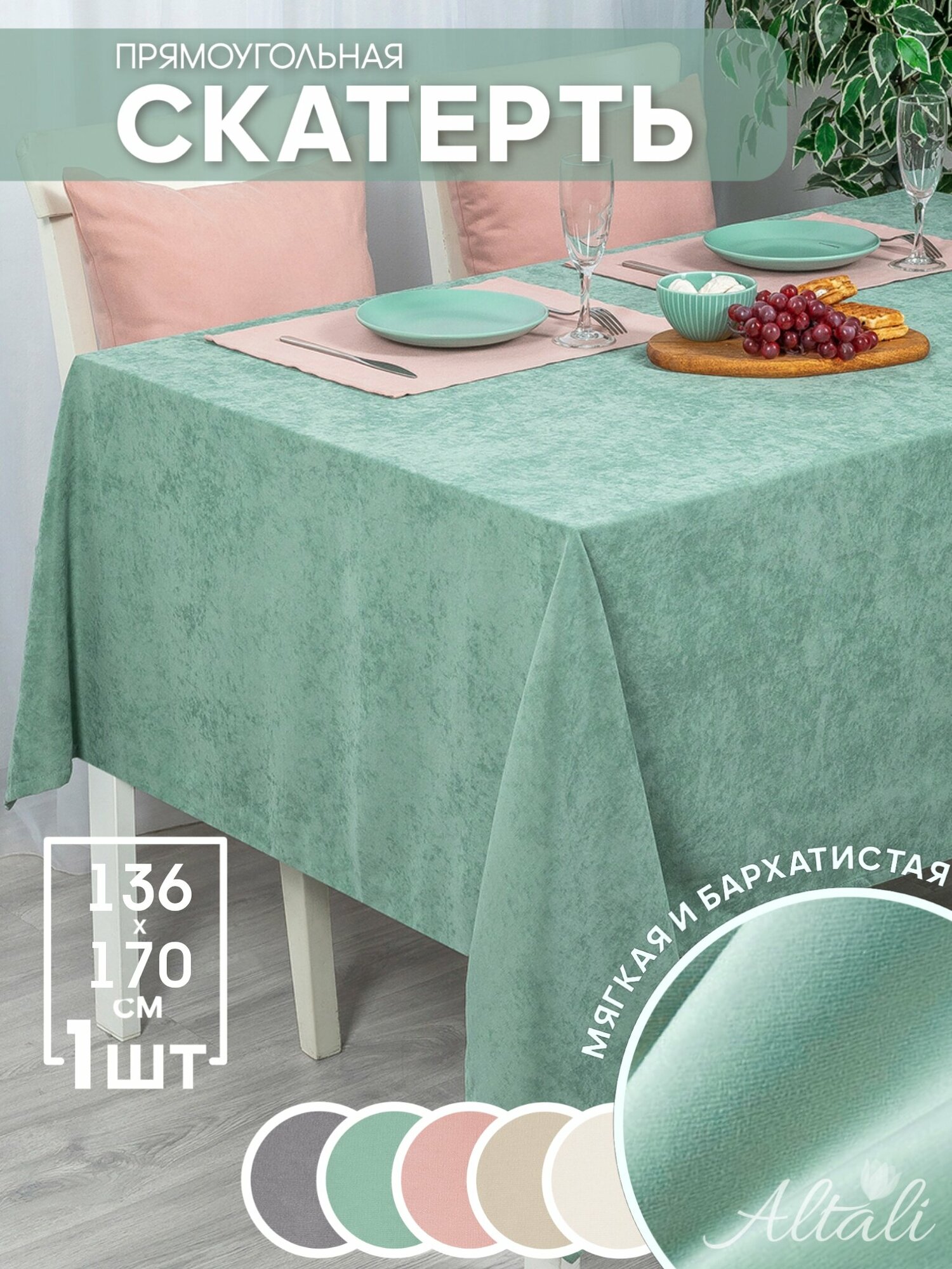 Скатерть кухонная прямоугольная на стол 136x170 Изумруд / ткань велюр / для кухни, дома, дачи /Altali 1 412 ₽