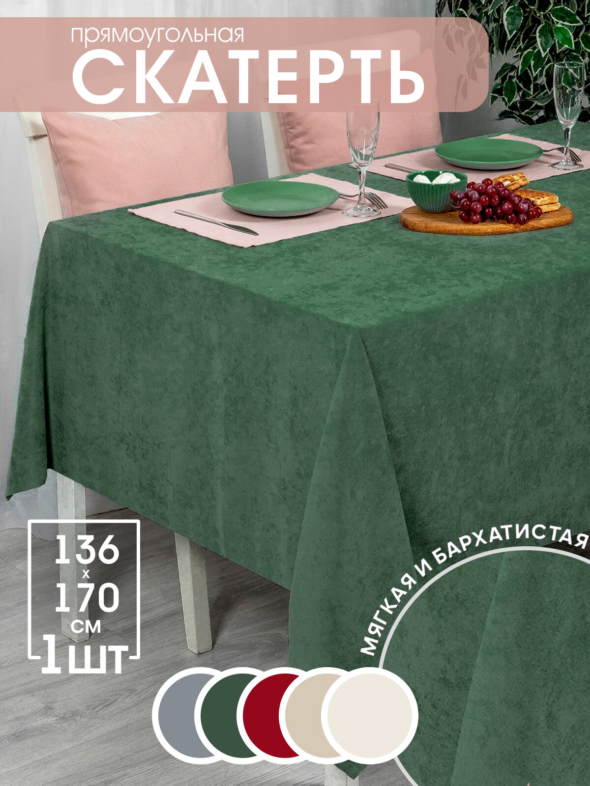10 цен на Скатерть кухонная прямоугольная на стол 136x170 Изумруд / ткань велюр / для кухни, дома, дачи /Altali