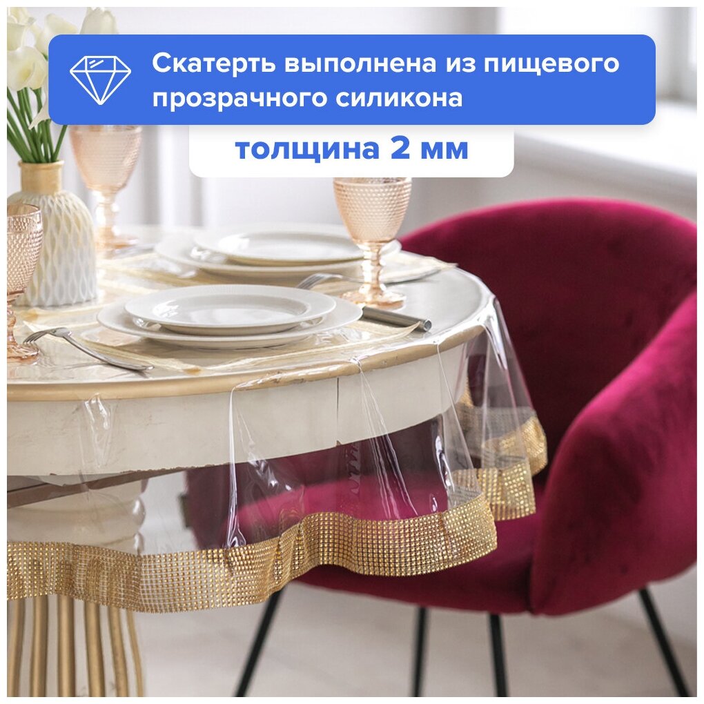 Силиконовая скатерть клеенка прозрачная на стол, водоотталкивающая, овальная, ПВХ 190х130 см информация: