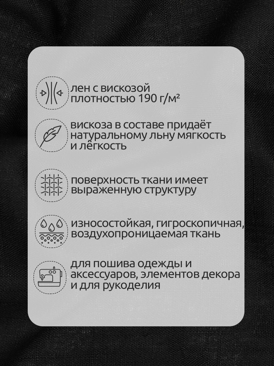 10 цен на Ткань льняная 190 г/м² лен 40%, вискоза 60% шир.140 см арт.TBY.Li.1002.16 цв.16 черный уп.1м