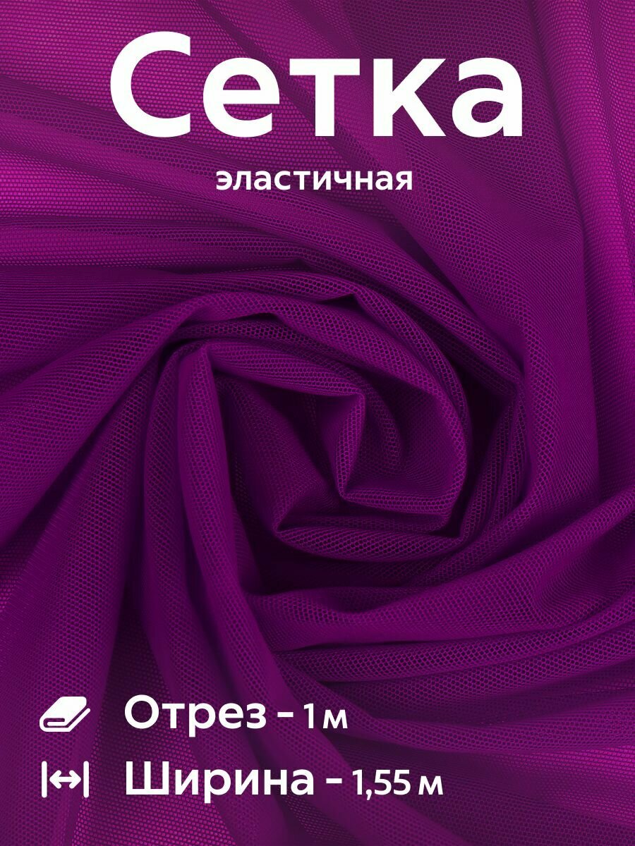 Сетка трикотажная эластичная стрейч Ткань Фиолетовый неон для белья, купальников, одежды, подкладочная Ширина - 155 см Длина - 1,5 метра Плотность - 90 г/м 770 ₽