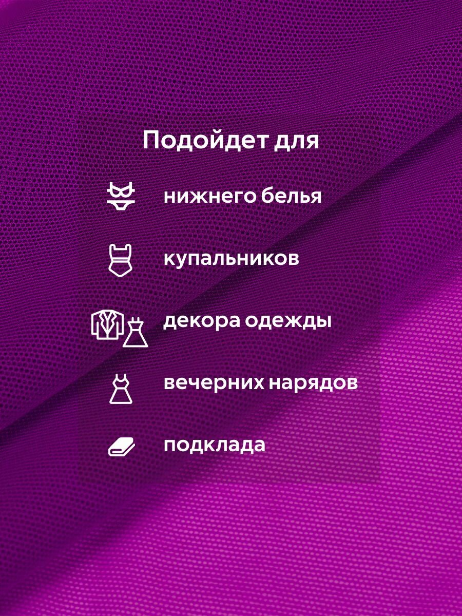 Сетка трикотажная эластичная стрейч Ткань Фиолетовый неон для белья, купальников, одежды, подкладочная Ширина - 155 см Длина - 1,5 метра Плотность - 90 г/м информация: