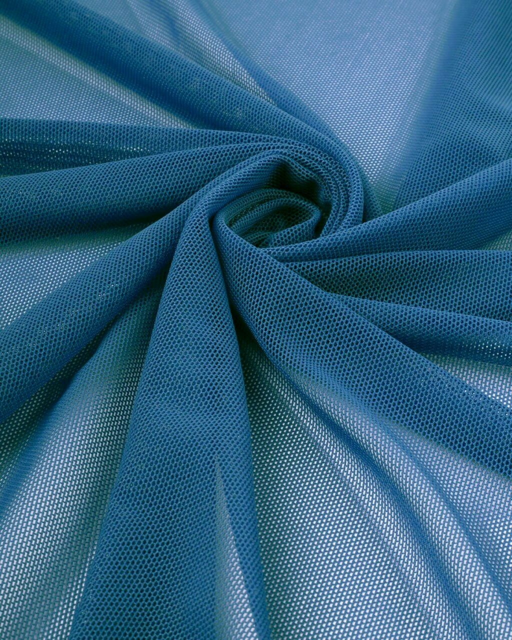 10 цен на Ткань сетка трикотажная эластичная стрейч для белья, купальников, одежды Темно-голубой Ширина - 155 см Длина - 1 метр Плотность - 90 г/м