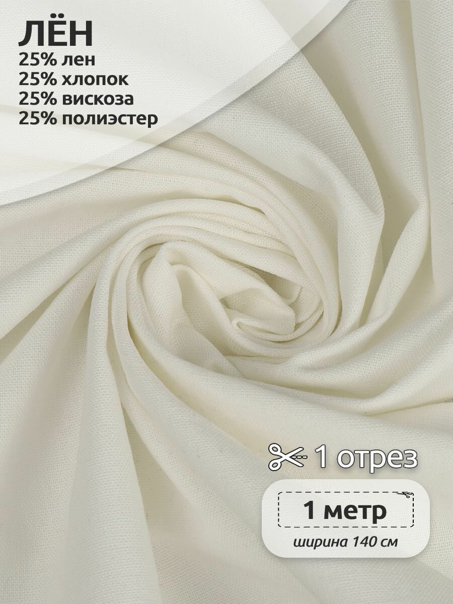Ткань льняная 200 г/м² лен 25%, хб 25%, вискоза 25%, пэ 25% шир.140 см арт.TBY.Li.1009.01 цв.01 белый уп.1м 604 ₽