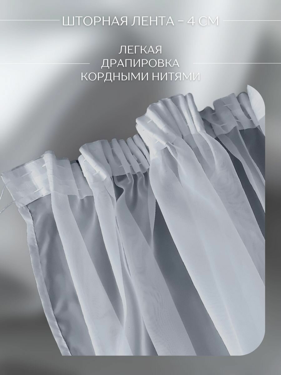 Тюль вуаль в спальню и гостиную длинная 200х240 см белая